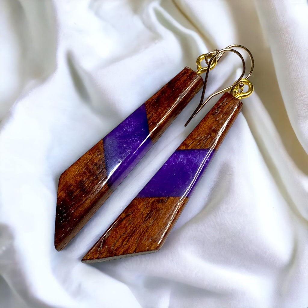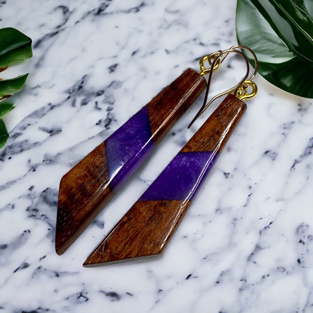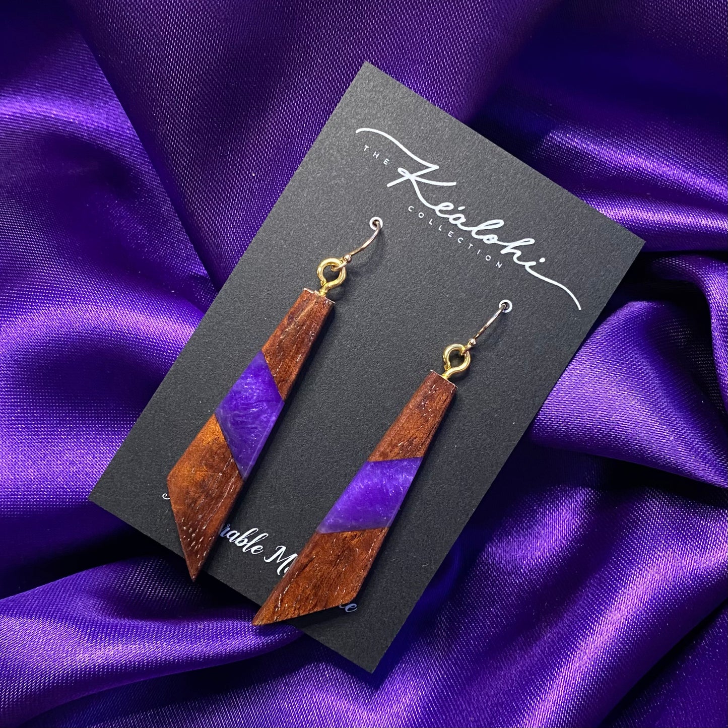Purple was a favorite color of Hawaiian royalty. Therefore, the name of this elegant design draws from the Hawaiian word for lavish and magnificent, Hīhīmanu. This is also the word for the islands' beautiful stingrays, which glide gracefully through our waters. Wear these earrings and bring about your inner elegance and grace.